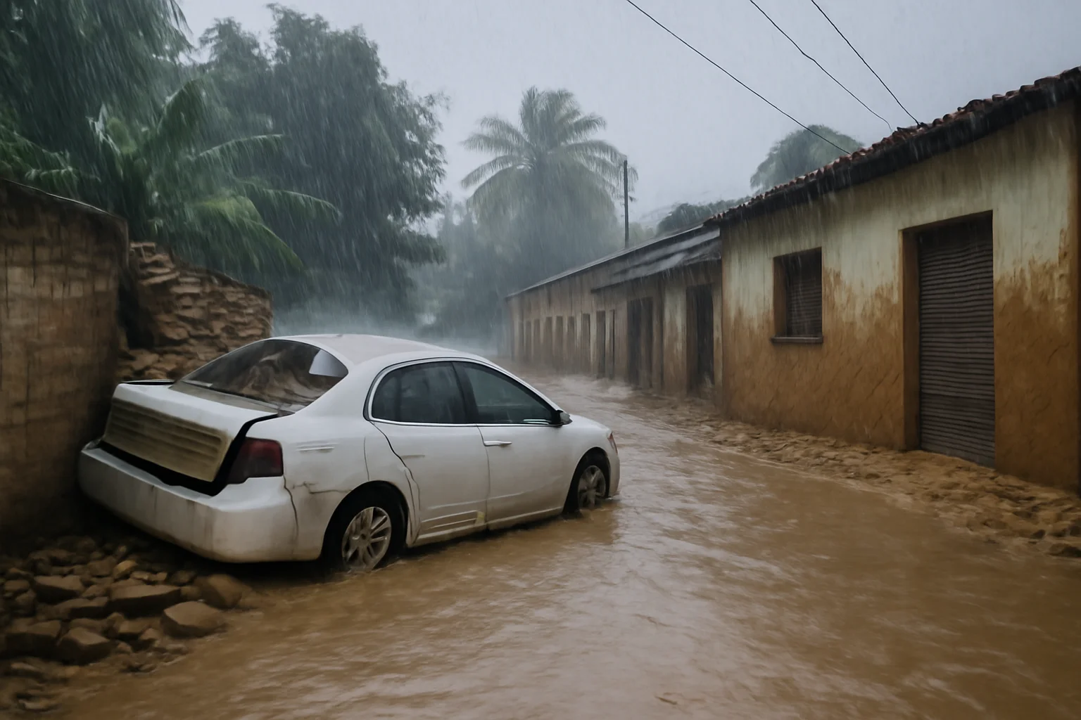 O temporal levou ao desabamento de um muro na Vila Gomes, Bairro Aerolândia, que caiu sobre um carro estacionado, enquanto diversas casas na região ficaram alagadas, com níveis de água que chegaram até a cintura em algumas vias. Apesar do susto, não houve registro de feridos.